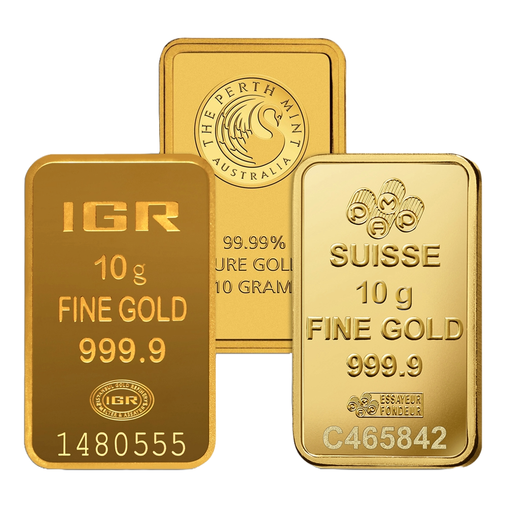 The 10 Gram Secondary Market Gold Bar is a popular choice for investors seeking fractional gold with lower premiums: