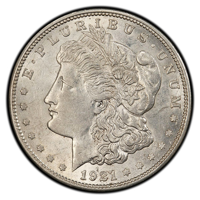 1921 Morgan Silver Dollar (XF+) – 0.7734 troy oz of .900 fine silver. final year issue.