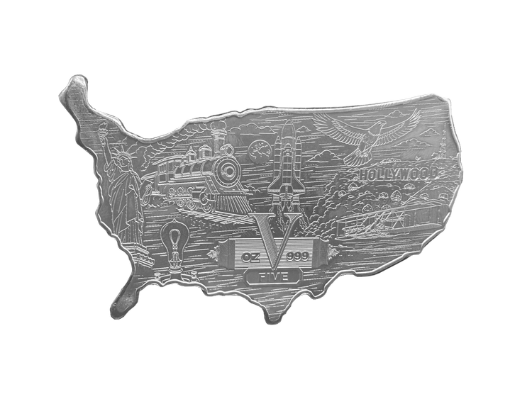 Unique Design and Shape: Cut in the form of the contiguous United States and filled with historic, cultural, and patriotic imagery on both sides, making it an artistic and memorable silver piece.