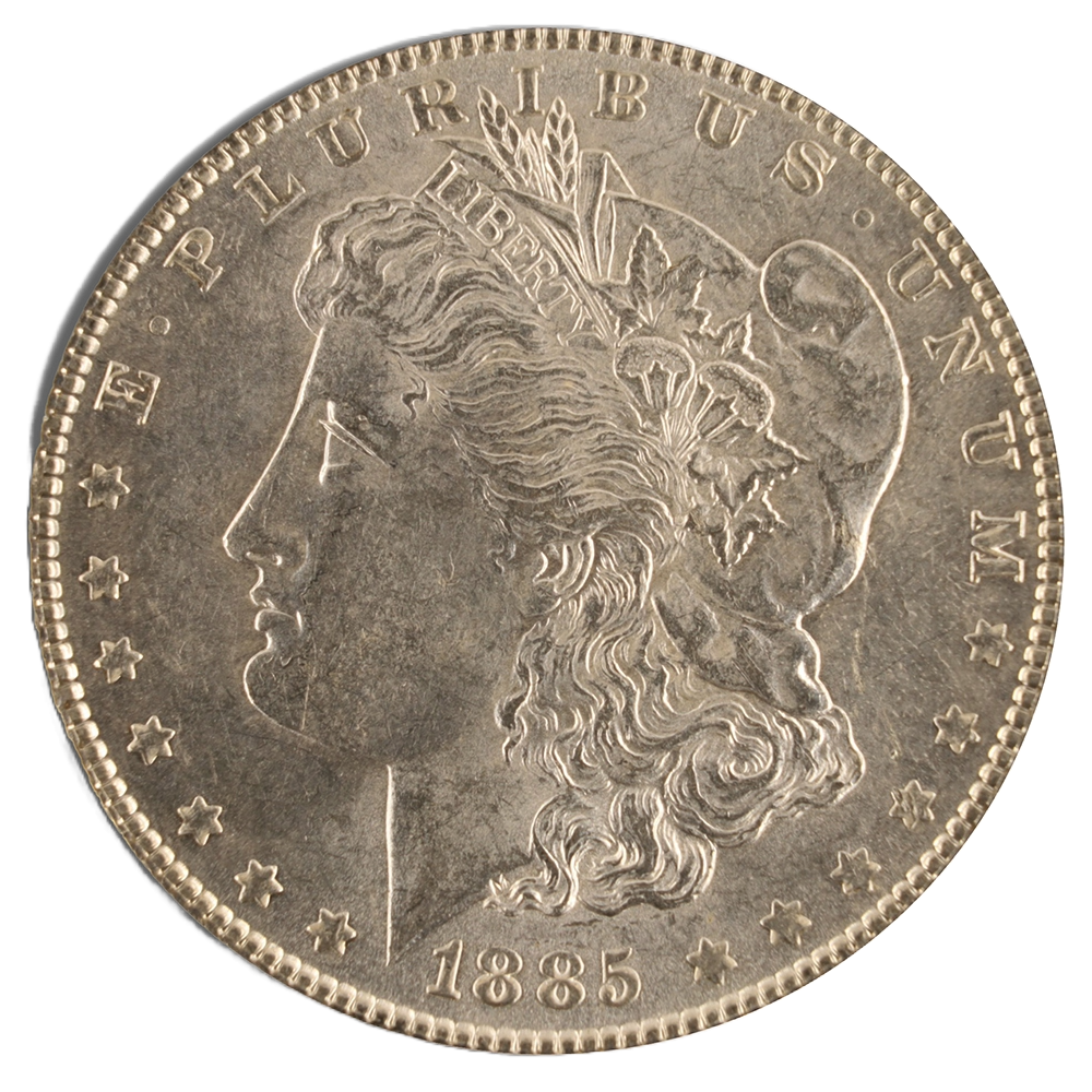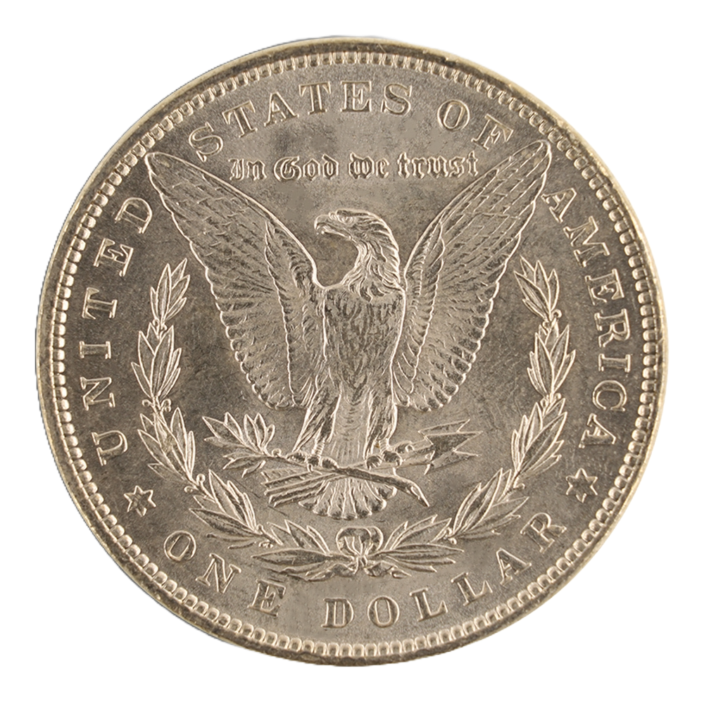 Morgan Silver Dollar (1878-1904) in XF/AU (Extra Fine – About Uncirculated) condition with 0.7734 troy oz of .900 fine silver—minimal wear, bright detail.